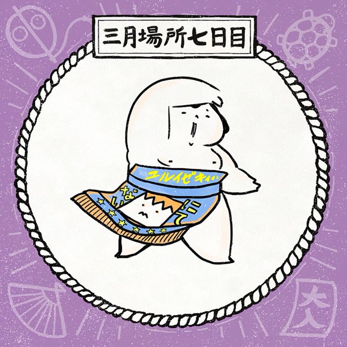 本日春場所七日目🌸 描きたかった化粧まわし🙇♂️ 今日も応援しています📣 #ゆるい関 #sumo #lineスタンプ #相撲 #大相撲 #三月場所 #大相撲春場所 #ジョジョ立ち
