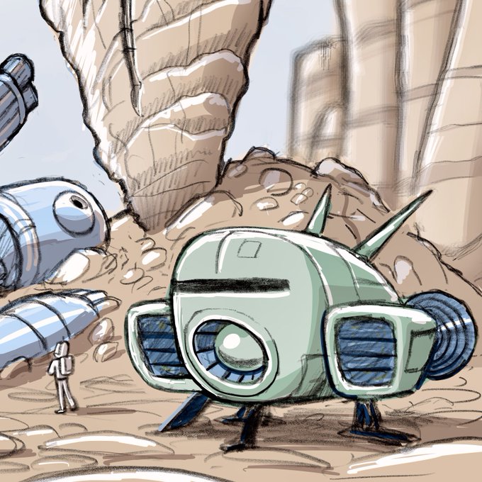 #MarchOfRobots2022 #Day4 #marchofrobots2022day4 #symbol #marchofrobotssymbol #robot #droid #tourist #starship #spaceship #conceptart #landscape created in #AdobeFresco