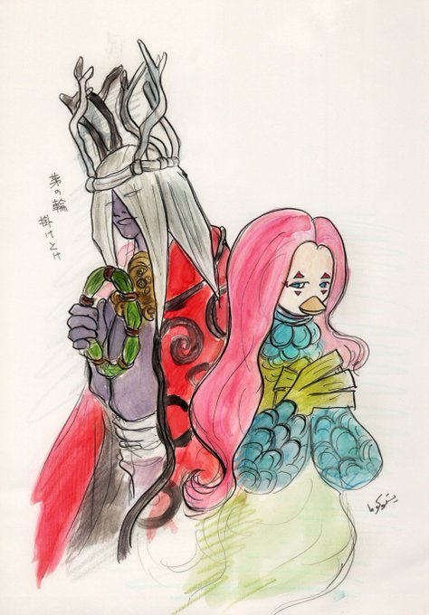 アマビエさんとスサノオさん。わたくしメガテン脳なのでスサノオさんはこんな感じ。 #アマビエ #スサノオ