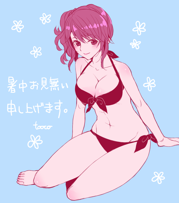どうすれば涼しくなるのか考えた結果ビキニになりました。みなさま熱中症には十分気をつけてください(´ρ`)