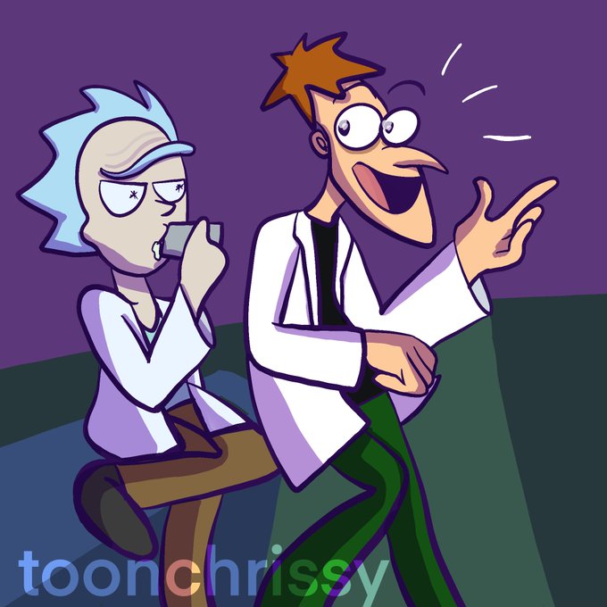 Also when I would be a scientist, I would be Dr. Doofenschmirtz and my friend @arlocado is Rick. look, these are alternative versions of us :3 #rickandmorty #phineasandferb