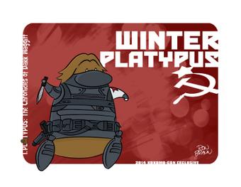 The exclusive "I, Platypus" print for @KOKOMOCON is Dakk Waggitt as Winter Soldier! FREE w/any purchase at my table!