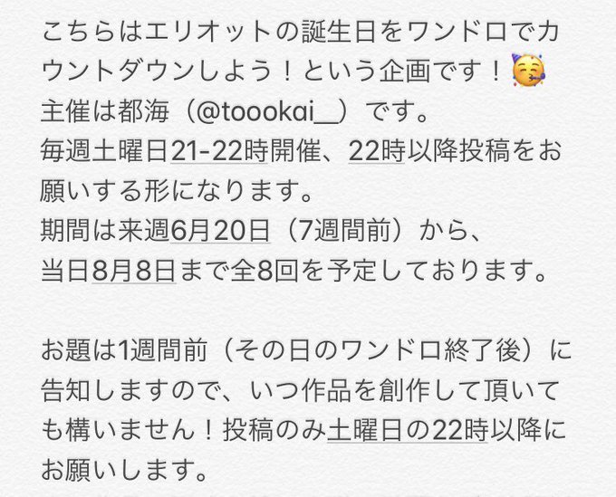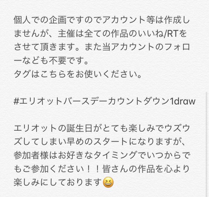 【エリオット誕生日に向けてワンドロを開催します!🎉】詳細は2枚目以降をご確認ください!😊タグはこちらになります。 #エリオットバースデーカウントダウン1draw