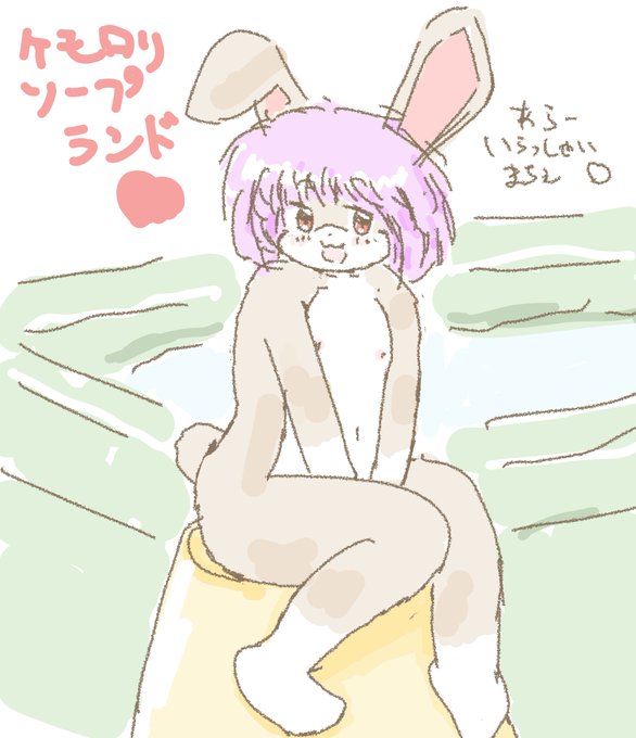 露天風呂ケモ娘さん。恥ずかしがって前を隠さずに早く入るケモ!色塗り完了。水彩筆いいなあ。