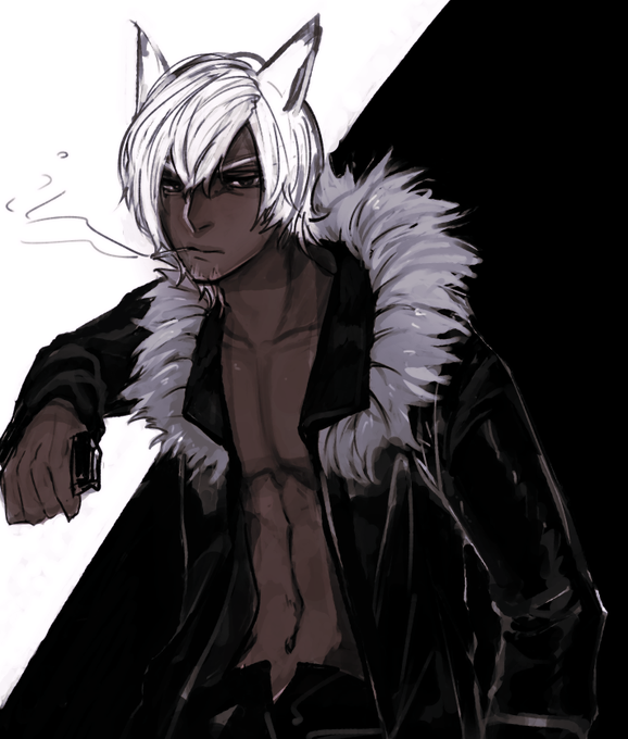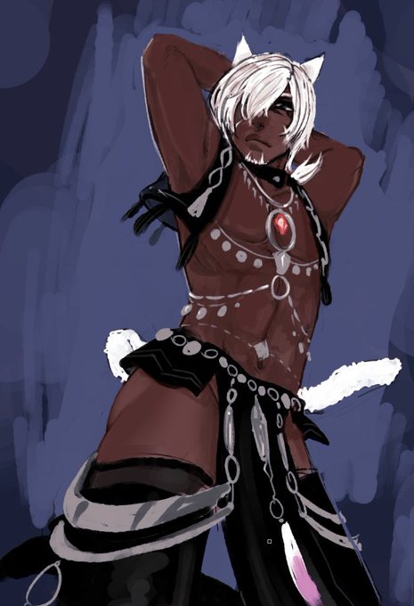 漆黒発表頃、ヴィエラ実装話が出た時に描いた妄想をほりおこしてきた アラブ男性的なセクシーさのある男性キャラ、14で作りたい|д゚)