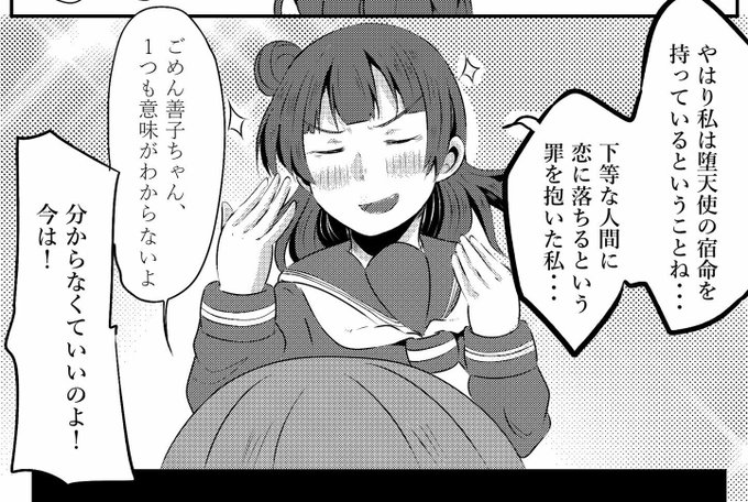 君たち、よしとりこちゃん;;なんなん;;;いい加減にして;;;(好き)😭 よく見えないけど善子ちゃん片っぽの羽どうしたの???もう片っぽの羽?????梨子ちゃんの羽さあ??ねえ??😭😭😭もーーーー;;;(語彙力死)😭😈🌸😈🌸😈🌸