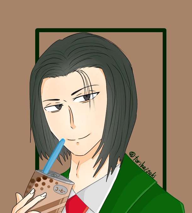コーヒー飲む柳くん ポーズ(とくに手)を描くのが苦手なので練習中です