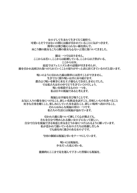 私たちの弔いと祝福をテーマに、女の子たちを描いた展示です。