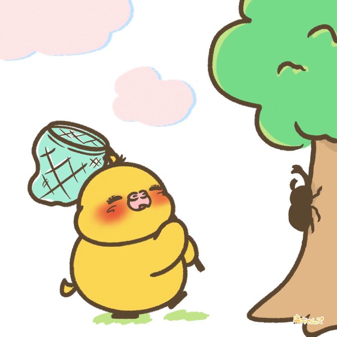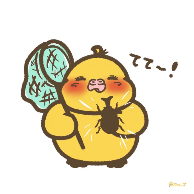 カブトムシ🕶🌴 #鳥ちゃんズ #イラスト #虫取り網 #夏 #summer #illustration