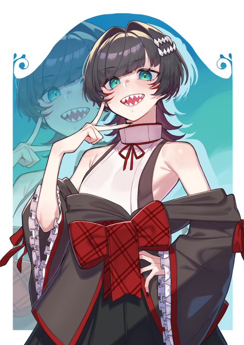 深海鮫Vtuberの深海ギン様を描かせていただきました!ギザ歯最高!ギザ歯最高! あなたもギザ歯最高と叫びなさい #Skeb