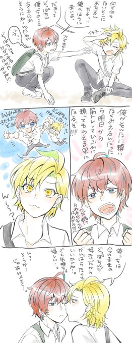 らむだとだいすとげんたろーのなかよしぽっせ4コマかきました。 鼻血/負けてる/CP要素無し ダイス描き慣れてなさすぎて両目全開してしまった😩片目に髪かける~!と念じて描き始めたのになぁ…