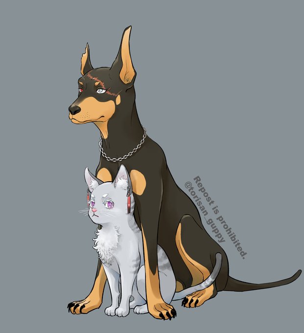 🐶カクイザ🐈※獣化・ケモ 🐶の🦋チャンと🐈の🎴です。
