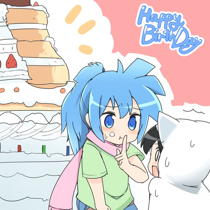 @alice_atene すごくギリギリですが誕生日おめでとうございます! 誕生日ケーキを一口つまみ食いしちゃったのを内緒にしてほしいクーさんと一口の概念が壊れたろこっちゃです!お納めください!
