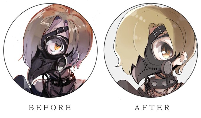 #皆さんラフと完成絵を見せてください 自分の絵で一番特徴的ところ:ラフと完成の差