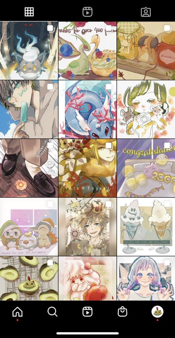 インスタ、おんなじサイズで自分の絵がずらぁって並んでるのみると、ちっちぇー美術館みたいだなぁって。インスタのアカウント作った当時では考えられんくらいいっぱい描いたな、って気持ちになった。よく続いてるよほんまに。
