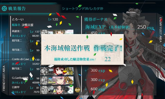 E2-2終わりー! ボス到達は8回くらい。回数は結構かかったけど半分くらいS取れてたし楽勝 あと顔のいいフランス水母が出てきた