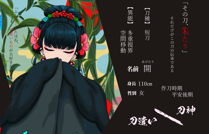 企画【 @KATANAGAMI_TL 】 刀神【開(あけたり)】で参加させてただきます。 ちょっぴり不気味で可愛い女の子です👀 宜しくお願いします♡ #カタナガミ_CS #カタナガミ_刀神