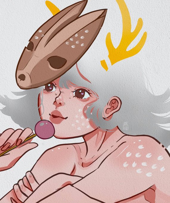 Revisiting the Mushroom motif with this circle-horned little lady: I might juice up the lineart for this a little more before I continue coloring!