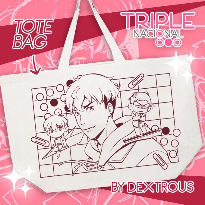 Tote Bag diseñada por la artista @rayearth_87 con los personajes del WEBTOON Triple Nacional.