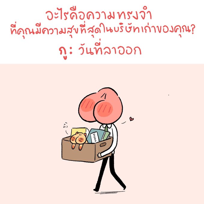 A : อะไรคือความทรงจำที่คุณทีความสุขที่สุดในบริษัทเก่าของคุณ ? กู : วันที่ลาออก