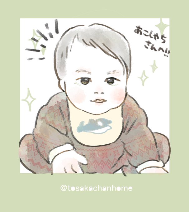 ぷくぷくほっぺときりっとおめめがきゃわわなお子さんでした👶✨とさかちゃんもめためた可愛く書いてもらいましたーーーーーー色づかいがすき‼️動物かわいい💕💕