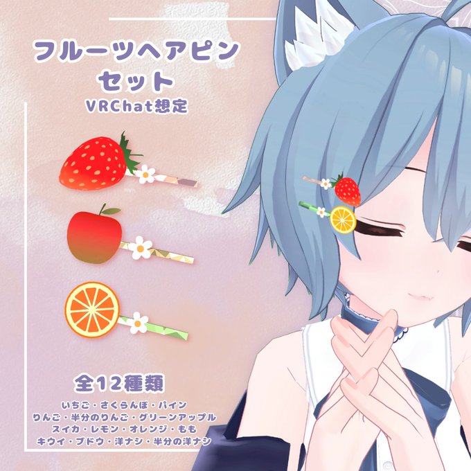 【3Dモデル】フルーツヘアピンセット (fruit hairpin set) 【VRChat想定】COKECCO✱PIYOPIYO