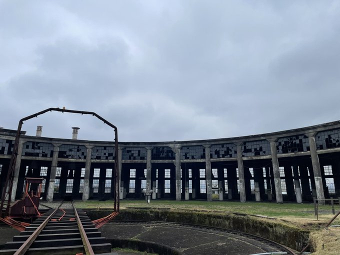 すずめの戸締まりのポスターなどに使われ、建物のモデルとされている旧豊後森機関庫に行ってきました〜! #すずめの戸締まり #聖地巡礼