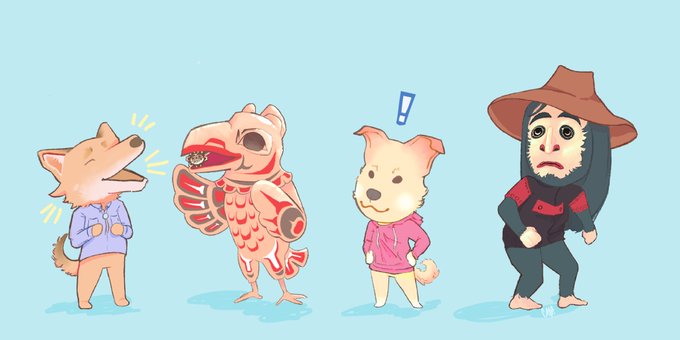 animal crossing: rez life #Nativember w/ our friends coyote and raven feat. sun, generic Rez Dog, and sasquatch