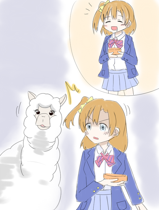 30分遅れスタート。スクフェスの穂乃果のお弁当がアルパカに奪われるやつです…このあとめちゃくちゃ追いかけっこした #ラブライブ版深夜の真剣お絵描き60分一本勝負