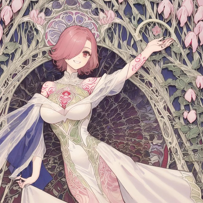 LoRAの効きを少し弱くしてあげたら他のプロンプトが効いてくれるから出力のコントロールができるようになってきた。 ただ、せっかくのツインテールが消えちゃうからプロンプトで調整やな ※訳:やっとart nouveauプロンプトが効いた 1024*1024だと画風影響できる #にゃっちー図 #AIイラスト #AIart