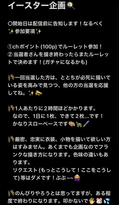 今日の配信はイースター企画試運転でした!来てくれた人ありがとう~~!✨ ここからまたブラッシュアップ🎨するかもしれないけど、形はほぼ変わらないよ🌸🪺 描かせてもらったのはすにょ!(@ Elsnyo )疲れてるのに遊びに来てくれてありがとね!🐣 企画の概要はよチェック〜‼︎♡♡