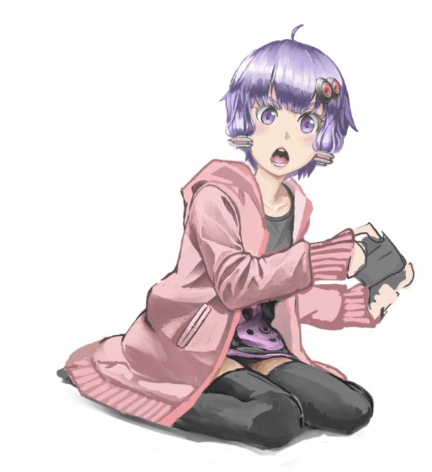 ゲームしているゆかりさん途中経過1 もうちょい驚いた顔にしたい。 足のかきかたわからん。