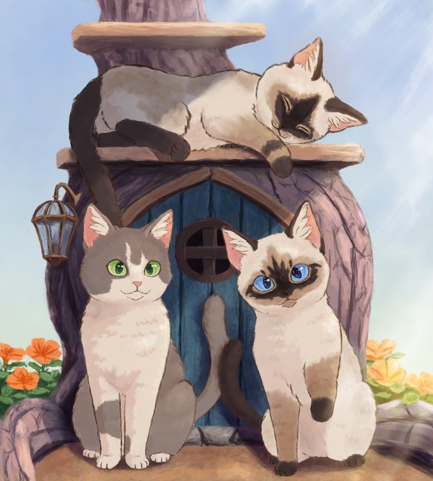 🌺今日のにゃんこ ゆったり絵☀️ おやすみ ☘️モデル元☘️ fate(@aryuu10)さん #一日一絵 #猫イラスト