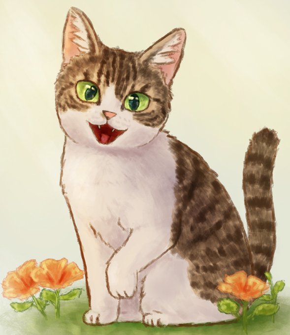 🌺今日のにゃんこ 笑顔🌞 ☘️モデル元☘️ かおはむ(@kaoham_)さん #一日一絵 #猫イラスト