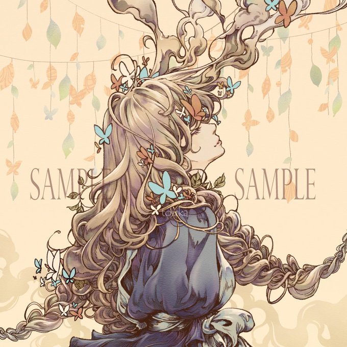 SNSなどにアップしても大丈夫と聞いたので、先日販売した「三つ編みと蝶」。 #オリジナルイラスト #創作イラスト #女の子イラスト #painter