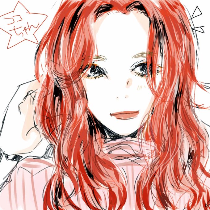 ココパテさんの私服と赤髪が可愛いという絵です☺︎︎ #ギャンパレイラスト