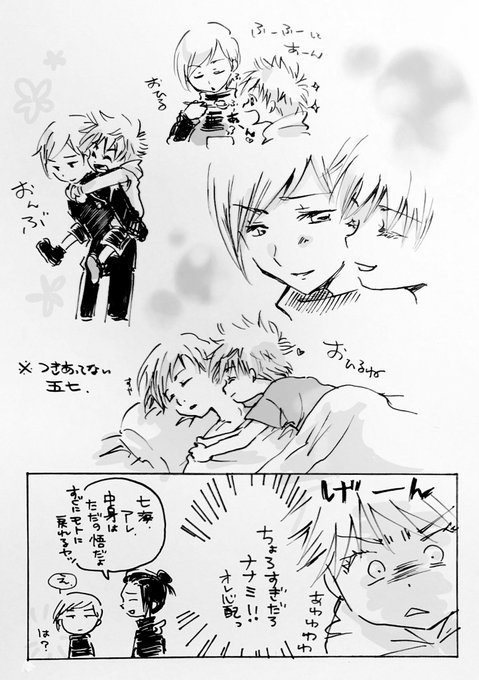 続・こどもになっちゃった七 もっと皆んなに愛されてる七が描きたいと思って描いたら、皆わらわら増えました☺️ (五七前提)五さんに回収される前 https://t.co/0nS3fT6Mjh