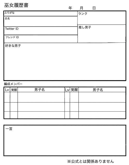 アカセカの巫女履歴書お借りして作りました〜〜!