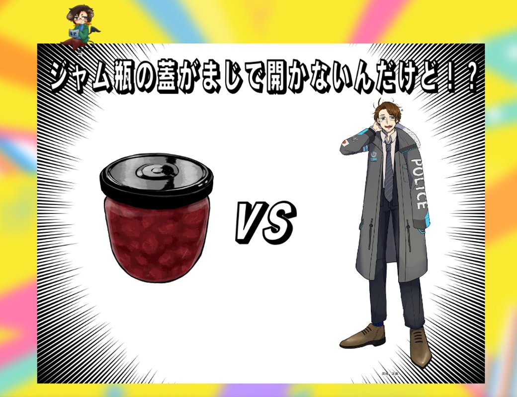 CoC「ジャム瓶の蓋がまじで開かないんだけど!?」 著: もけ犬 様 KP:時雨(茶々入れKPC:灰崎 玖仁彦) PC/PL:灰崎 正義/とうや 開けられました!!!!!!!!!!!!勝ちました!!!!!!!!!!!!!ジャム美味しかったです♡ 「見て玖仁彦くん!僕一人でも開けられたよ!」