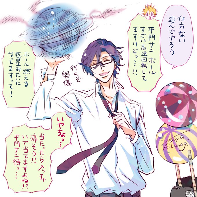 平門の誕生日にたくさんのお祝いを有難うございました!とても嬉しかったです…!イラストは公式ツイッターで呟いていた任務から戻った與儀達に、誕生日お祝いのお礼として一緒に遊ぶ平門