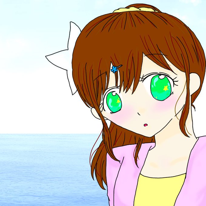 こんばんは! ソーラさん描いてみました! 下手くそですが見ていただけると嬉しいです😅 夏っぽく海を背景に🌊🌊 @Sorcha1011