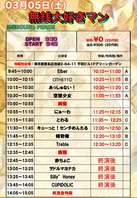 明日からは東京遠征です‼️ 3/4 新宿グラムシュタイン https://t.co/ZXtNt7JTH0 3/5 池袋SOUND PEACE 運営予約 新宿アルタKeyStudio https://t.co/BdPLmU6u3O 3/6 渋谷RING https://t.co/9KyKkuprjp SOUNDPEACE 当日使用可能チェキ券1枚 その他 予約特典 チェキ券1枚+写メ券2枚に変更