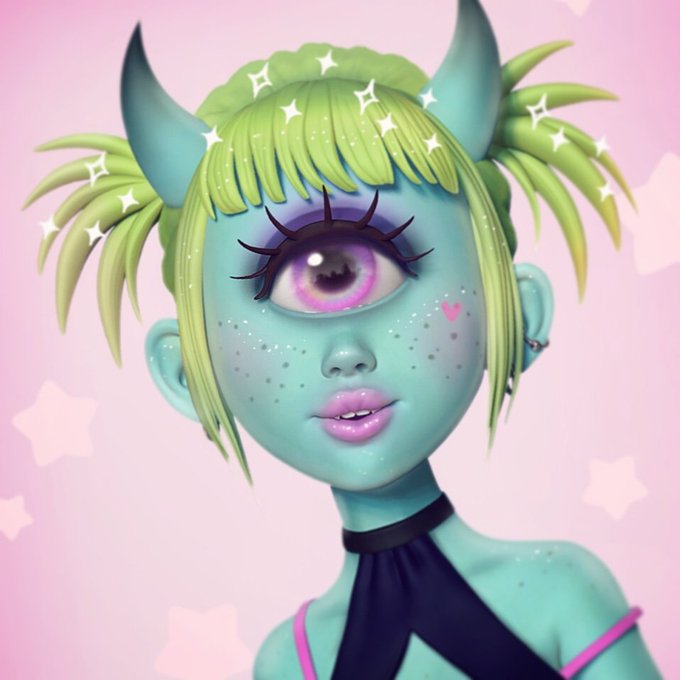 @Salmikawolf Hey! I'm a 3D Artist, I love making creepy-cute characters, especially candy-themed demon types 🍭