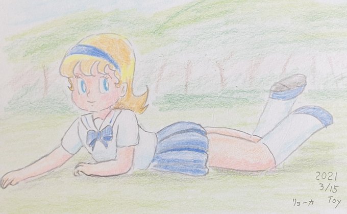 昼にかけなかったので、夜に描きました。仕事でもやもやっとしているので、描かずにはいられない。オリジナルキャラのリョーカです。