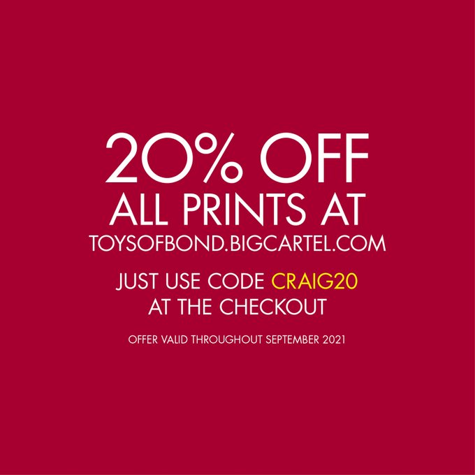 My Bond icon prints all have 20% off during September in the run up to the release of #NoTimeToDie, so grab youself a bargain whilst stocks last.