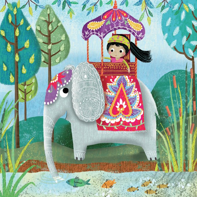 Feeling thirsty ! @Clr_Collective #colour_collective #seablue #illustration #kidlitart #elephant #fish #trees