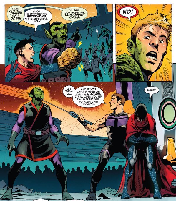 WAIT... THEY'RE ON THE NEW KREE / SKRULL THRONEWORLD.....