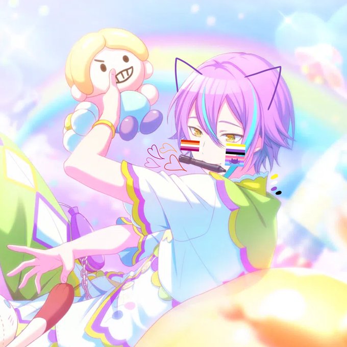 emu is transmasc, aromantic, sapphic and in queerplatonic relationships with saki, honami, haruka, kohane, mafuyu and nene, whom are all trans!