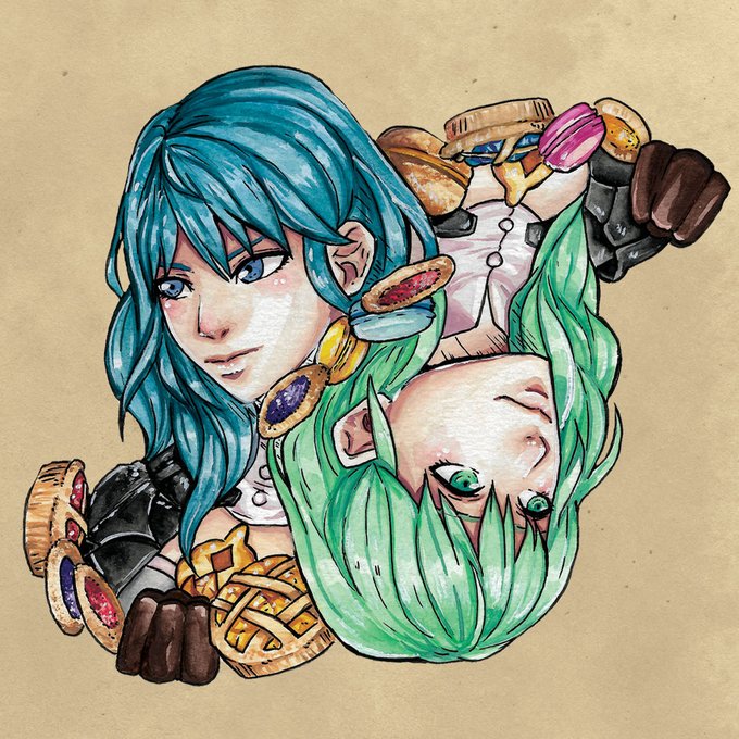 blue or green hair? Byleth for my Teas of Fodlan Zine, with treats and tarts bc shes a snacc.