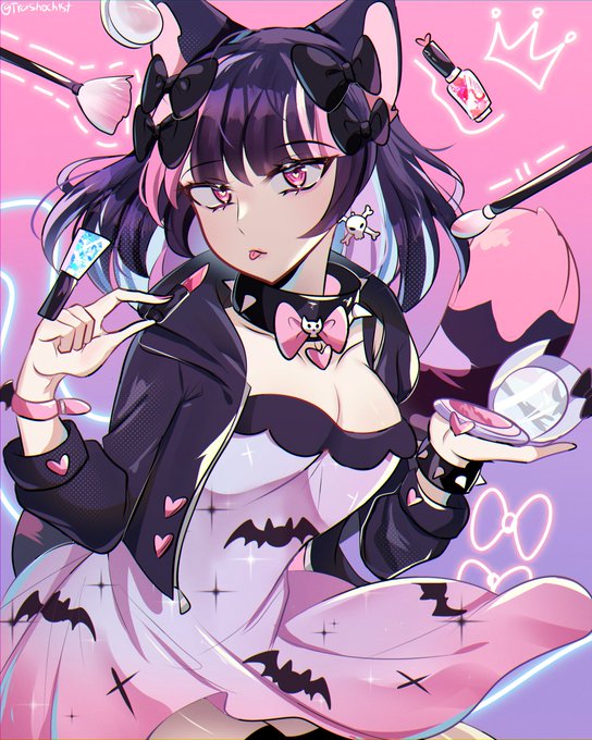 was going to make a goth gf oc that looks like Oberon but ummm i already have a goth gf oc that have Oberon hairstyle 😭 (design and left art by Hinausa btw)